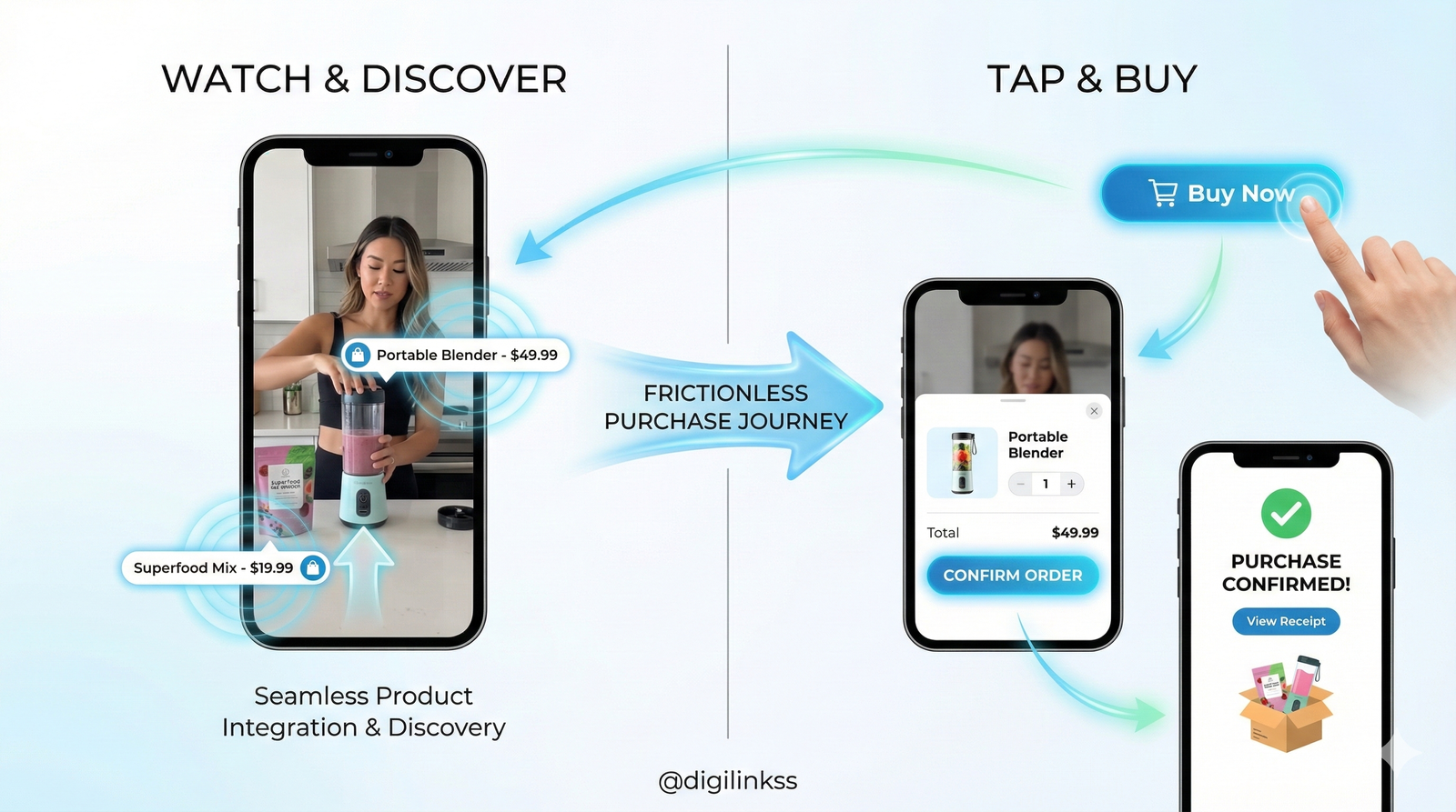 Imagine seeing a 20-second video featuring a product in action, tapping the product link instantly inside the app, and completing the purchase without ever leaving the platform. That’s the future, powered by short-form video.